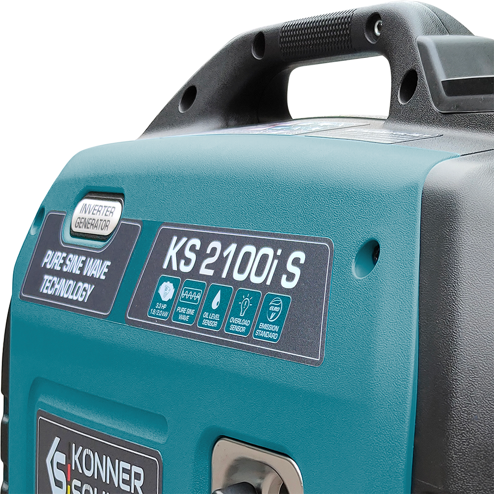 Бензиновый генератор инверторного типа KS 2100i S немецкой торговой марки Könner&Söhnen в шумозащитном корпусе – это удобный компактный, практически бесшумный источник электроэнергии. Ключевая особенность данной модели состоит в том, что она производит электрический ток с правильной синусоидой.